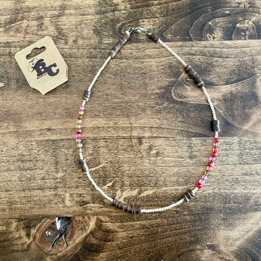 Hand crafted necklaces to last through any activity! From snowboarding, dirt bikes, the lake, and more! These necklaces are made to be tough and withstand any element! They are made with a double stranded stainless steel wire, a unbreakable clasp, and real stones!