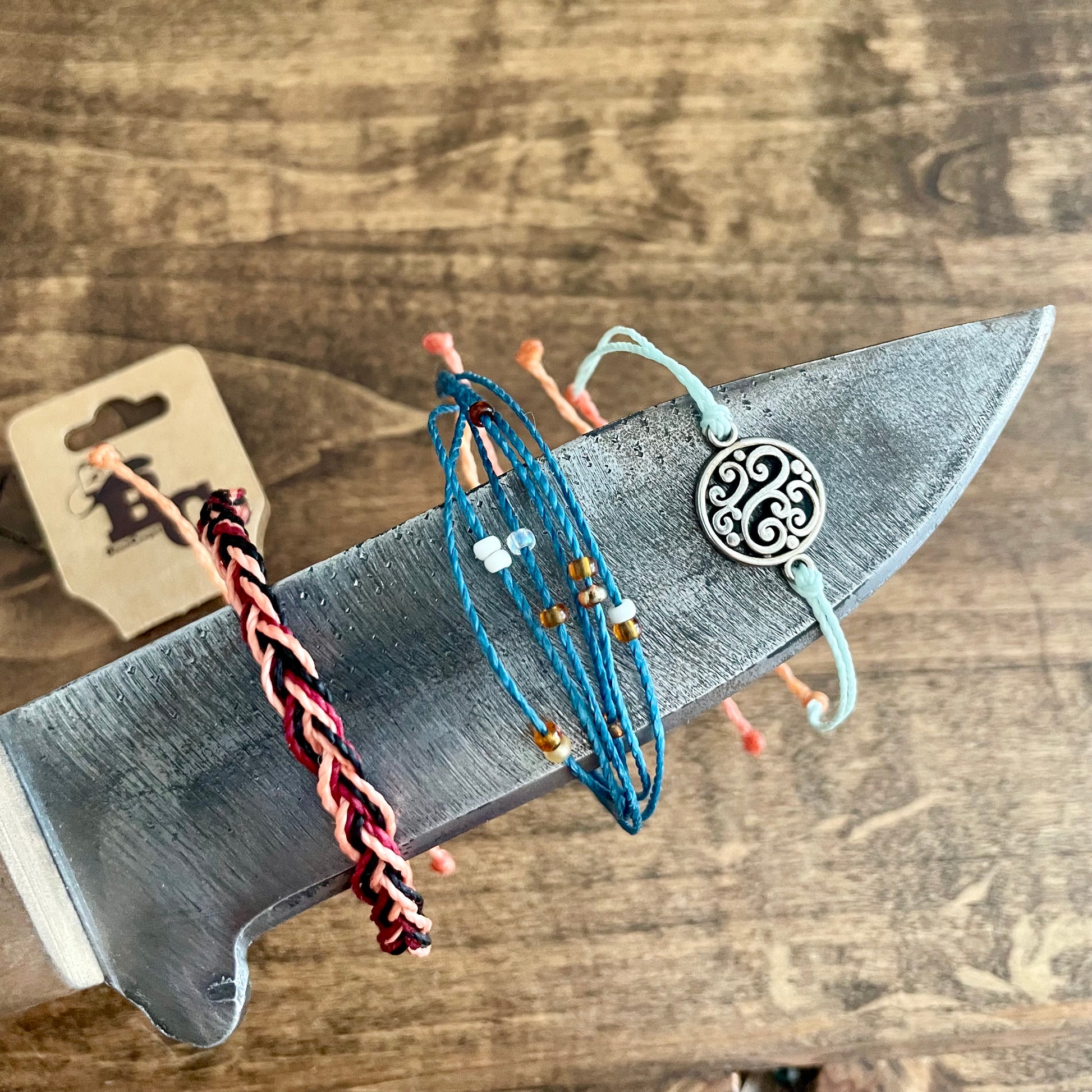 Three matching bracelets in this set! Super cute charm, beads and great colors! Fully adjustable and wax coated for a long lasting life! These are completely adjustable, waterproof and great quality! Made to order.