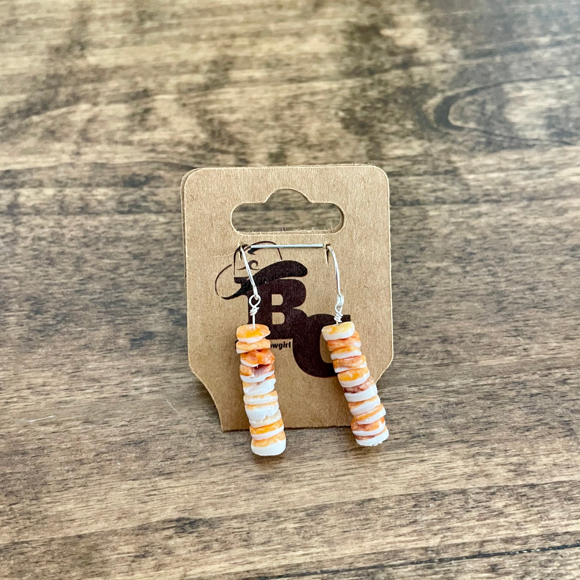 Handmade sterling silver earrings with real shells. Orange oyster shell. Super cute for any occasion and great quality!
