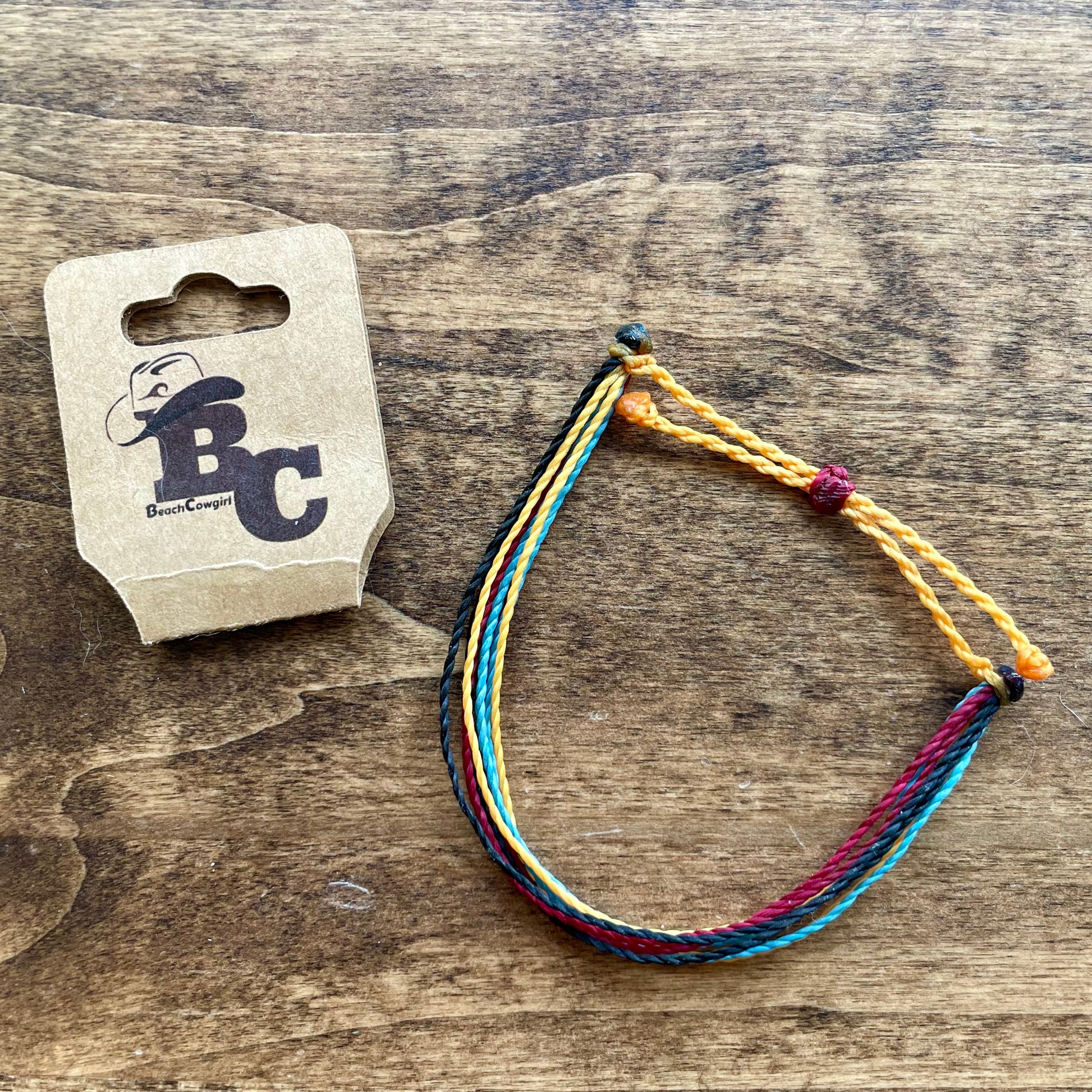 Stylish three pack handmade bracelet set! Cool silver beads! Wax coating makes it durable and long lasting. Holds color, waterproof, adjustable and stylish!